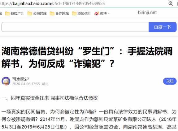 一场真实的民间借贷,为何会被定性为诈骗?一份具有法律效力的民事调解书,为何会被违规撤销?2014年11月,谢某龙作为慈利县紫某矿业有限公司法人(2016年5月3日至2018年6月25日任职),因公司经营急需资金,向湖南常德高某泽、高某父子提出借款请求,双方所有债务均发生在谢某龙担任法人期间。